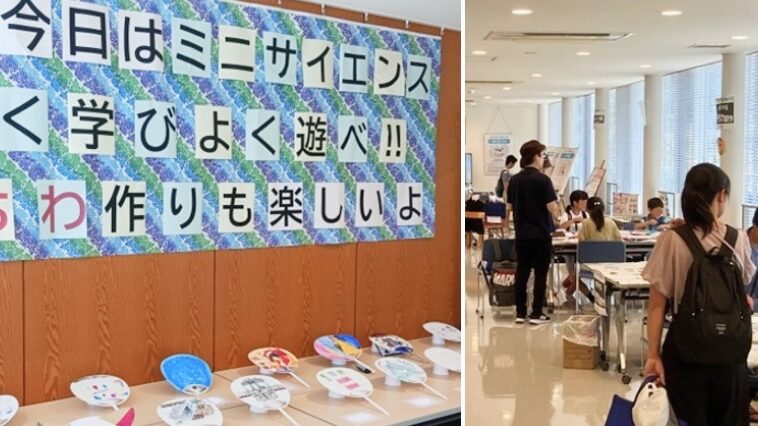 夏休みミニサイエンスを兵庫県立工業技術センターにて開催しました。兵庫県発明協会からは、「第83回全日本児童発明くふう展」へ兵庫県から出展し入賞した作品や発明クラブの児童が作成したうちわの展示とうちわづくり体験を開催しました。うちわづくりでは、オリジナリティあふれるうちわが多数完成し、会場は笑顔に包まれました。